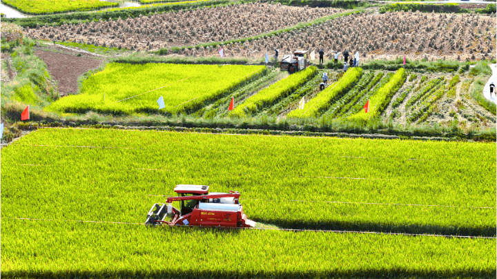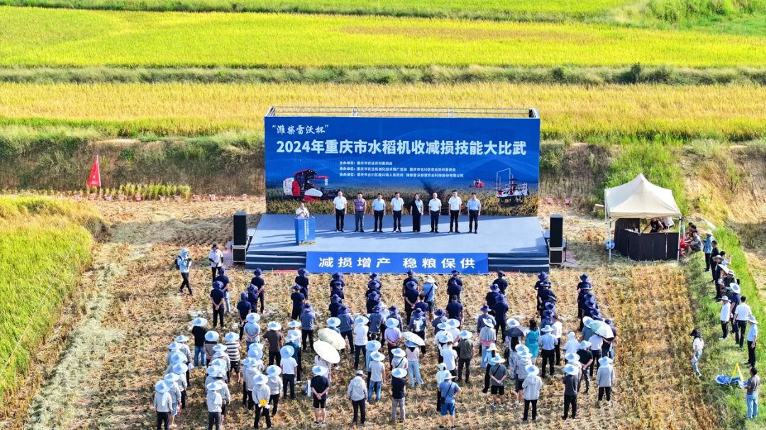 8月26日,“山城”重庆的天气“热情似火”,合川区隆兴镇玉河村的优质粮油示范基地里稻香阵阵,2024年重庆市“潍柴雷沃杯”水稻机收减损技能大比武活动火热开赛。
