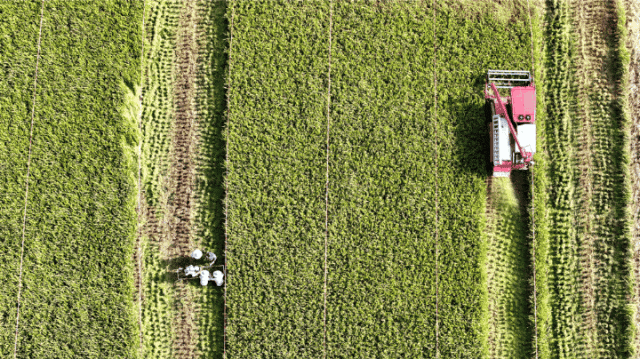 稻田变“赛道”,活动现场,八台雷沃谷神收割机在地头整装待发。随着裁判一声令下,来自各区县的32名选手分四组轮番上阵展开比拼。拨禾轮快速的运转中,金色水稻被收入“囊”中,多余的茎秆从车尾撒出,丰收的赛道上溢满稻香。八台收割机“你追我赶”,拼劲十足。