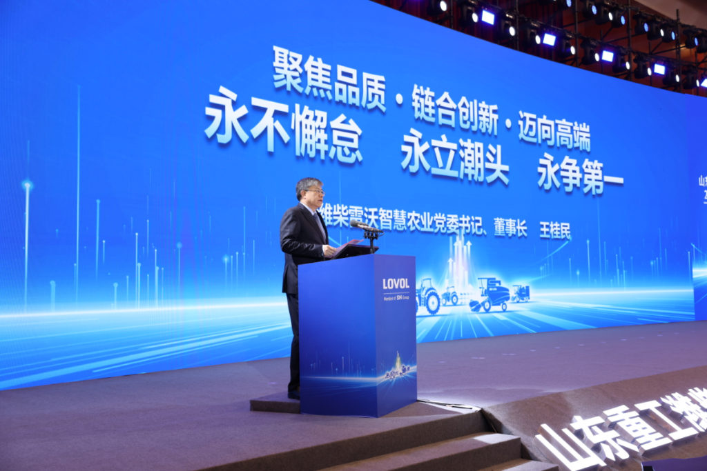 叶建军在致辞中指出,今年以来,山东重工集团保持了高质量发展的良好态势,主要经营指标再创新高。潍柴雷沃智慧农业面对激烈的市场竞争,继续保持稳中向好发展态势,实现逆势增长。山东重工集团将发挥协同创新优势,推动潍柴雷沃智慧农业实现高质量、跨越式发展。面向“十五五”,期望全球合作伙伴能与潍柴雷沃智慧农业共同努力、持续提升,坚持共赢未来、链合创新、质量为先、组团出海、诚信经营,建设世界一流农机产业链,为保障国家粮食安全、助力乡村全面振兴贡献更大力量。