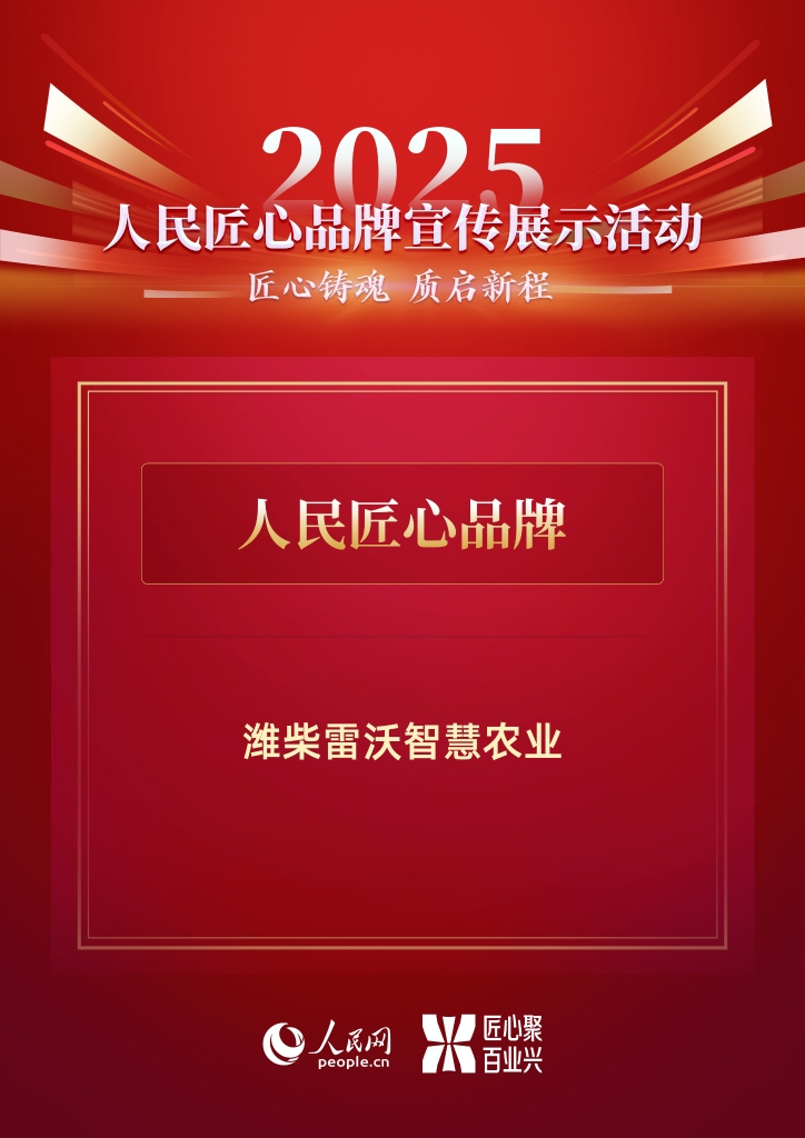 12月30日,2025人民匠心品牌宣传展示活动案例名单公布。潍柴雷沃智慧农业凭借以科技创新赋能高质量发展、积极践行护航大国粮安国企责任的生动实践,入选“人民匠心品牌”。