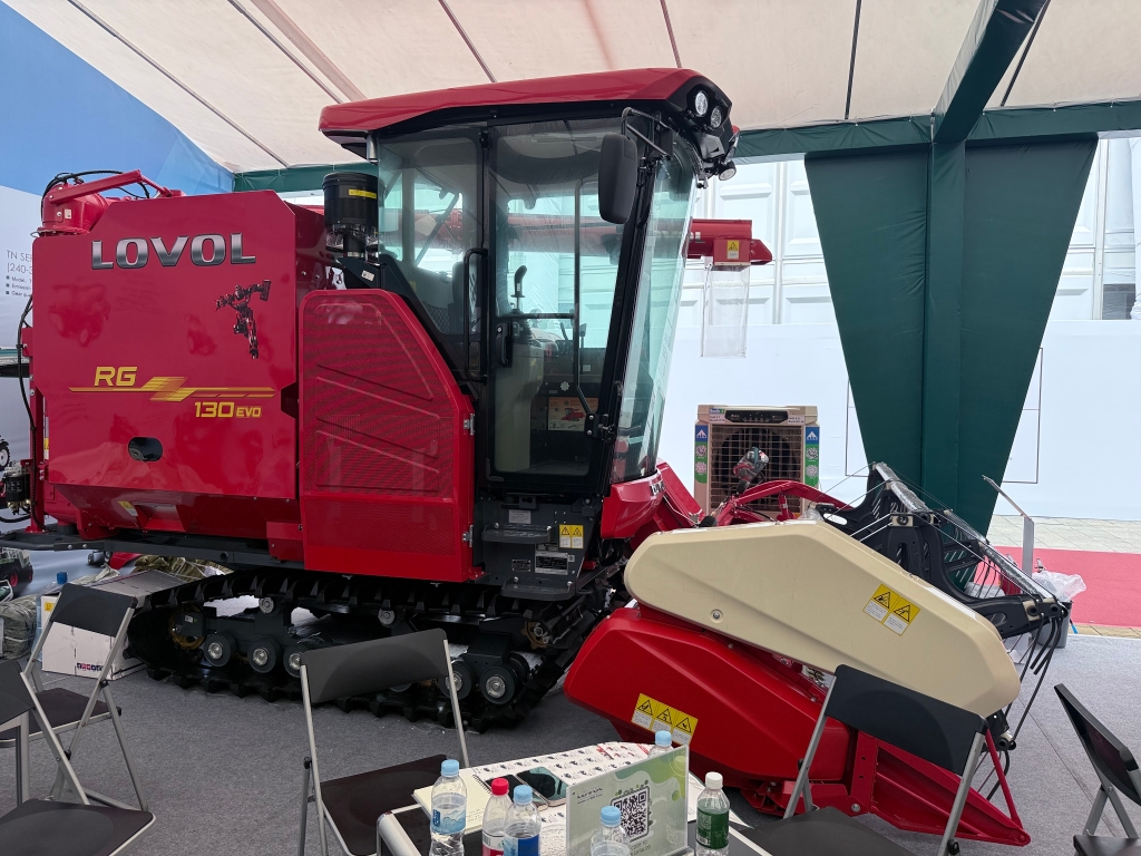 在收获机械展区,雷沃RG130 evo履带式收割机为用户带来了“多快好省”的选择。该机型动力强劲,配套多功能割台与加长脱粒滚筒,可兼收水稻、小麦、大豆、玉米等多种作物。大容量粮仓配合高位卸粮设计,能够灵活适配各类运粮车,显著提升用户作业效益。“这款机型的作业效率和智能化水平让我印象深刻,这正是我们当地农场升级所需要的装备。”一位东南亚客商在深入交流后表示。