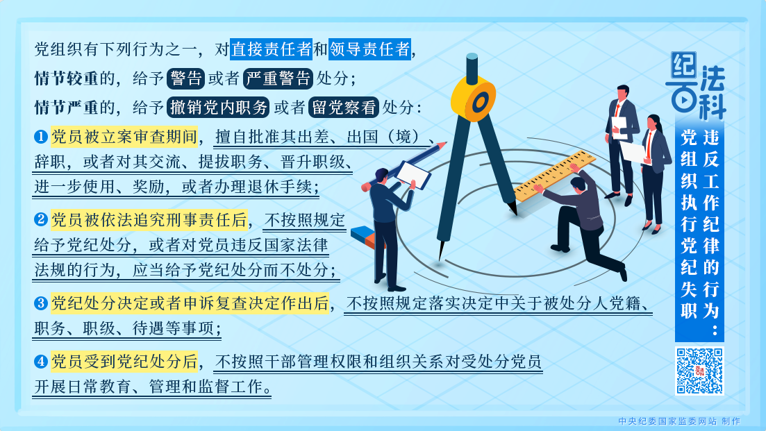 《中国共产党纪律处分条例》第一百三十六条规定,党组织执行党纪失职,情节较重的,对直接责任者和领导责任者给予相应处分。该条共有四款,分别是:党员被立案审查期间,擅自批准其出差、出国(境)、辞职,或者对其交流、提拔职务、晋升职级、进一步使用、奖励,或者办理退休手续;党员被依法追究刑事责任后,不按照规定给予党纪处分,或者对党员违反国家法律法规的行为,应当给予党纪处分而不处分;党纪处分决定或者申诉复查决定作出后,不按照规定落实决定中关于被处分人党籍、职务、职级、待遇等事项;党员受到党纪处分后,不按照干部管理权限和组织关系对受处分党员开展日常教育、管理和监督工作。其中,第一款为2023年修订《中国共产党纪律处分条例》时新增的内容。